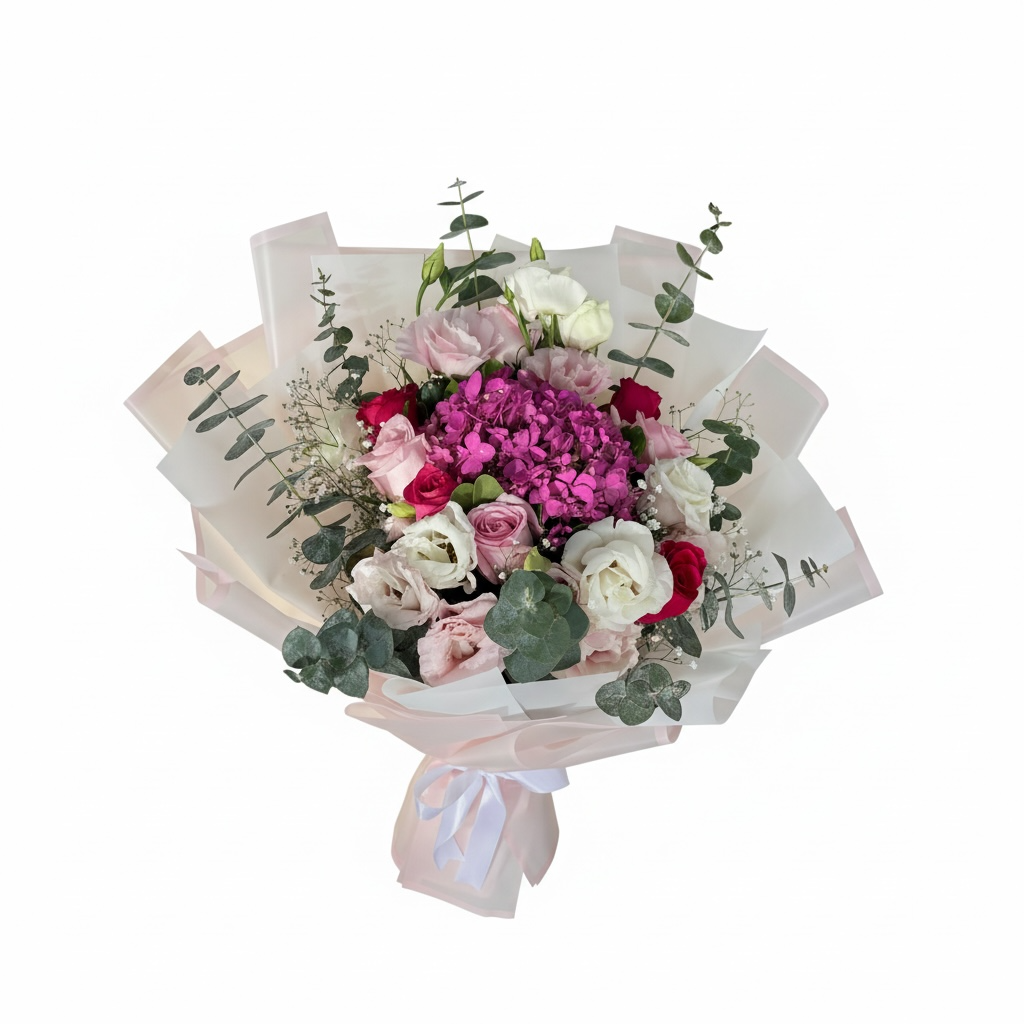 Dulce Romance es un ramo romántico y delicado que combina una hortensia pintada en tono rosado, lisianthus rosado, rosas rosadas y fino follaje. Perfecto para aniversarios, cumpleaños o sorprender a alguien especial, este arreglo floral destaca por su elegancia, suavidad y estilo femenino. Ideal para regalar amor en cada detalle. 🌸💕